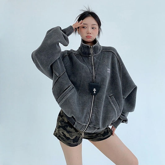 【アウター】レトロ 春秋 oversize 刺繍 パーカージャケット【FCシリーズ】