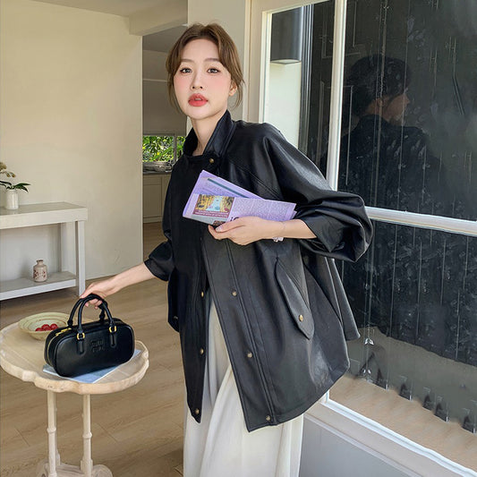 【アウター】PUレザージャケット レディース 春秋 ヴィンテージ ゆったり ショート丈 おしゃれ バイカージャケット【JZシリーズ】