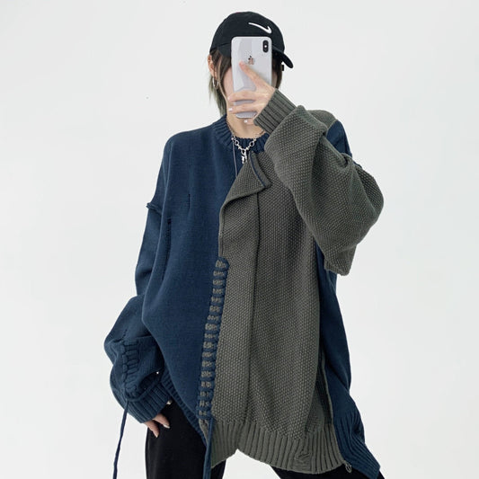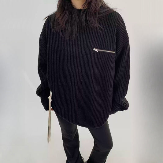 【トップス】 秋冬 ジッパーデザイン おしゃれ 大きいサイズ ルーズ ラペル ニットセータ カーディガンー【SNシリーズ】