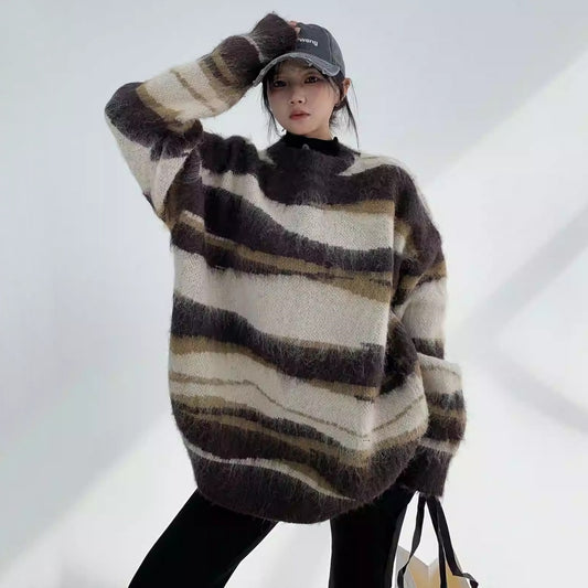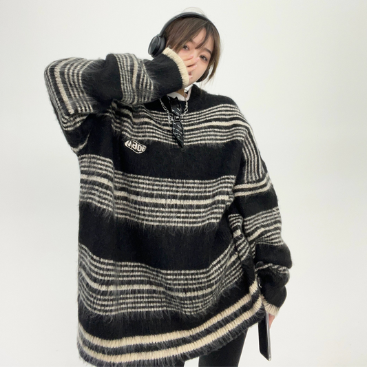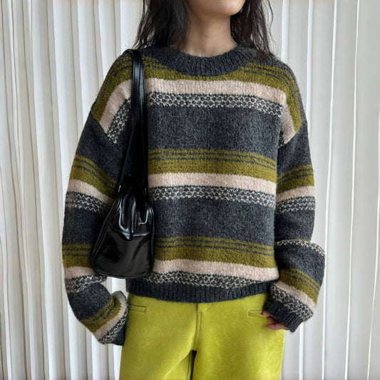 【トップス】秋冬 ストライプ柄 ゆるリラックス セーター 【SNシリーズ】