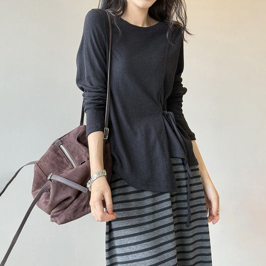 【トップス】韓国風リボンウエストマーク長袖ニット レディース 秋新作 個性的 ゆったり Tシャツ【JZシリーズ】