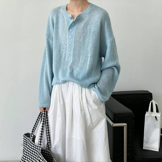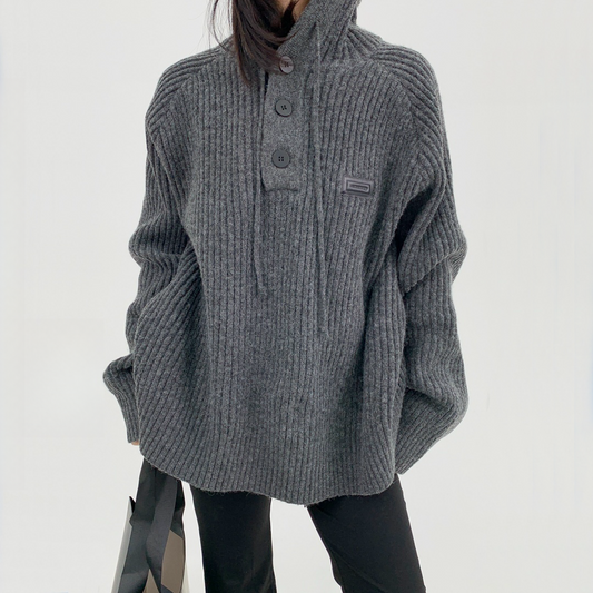 【トップス】春 秋 冬 ハーフボタン付きクルーネック 韓国風 ニット セーター 【JZシリーズ】