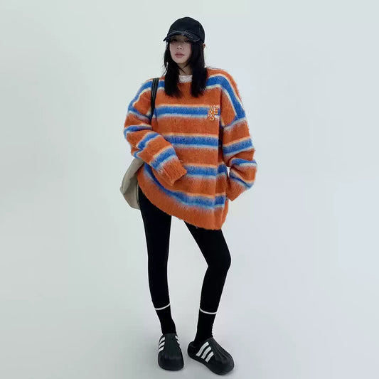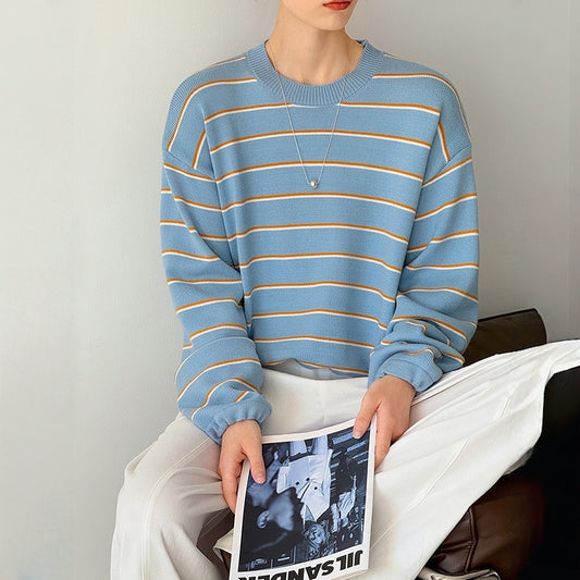 【トップス】秋冬 韓国風 ゆったり カジュアル ストライプ クルーネック セーター【FCシリーズ】