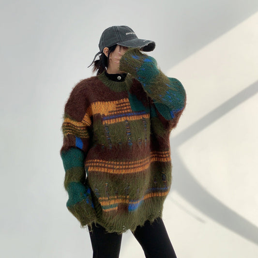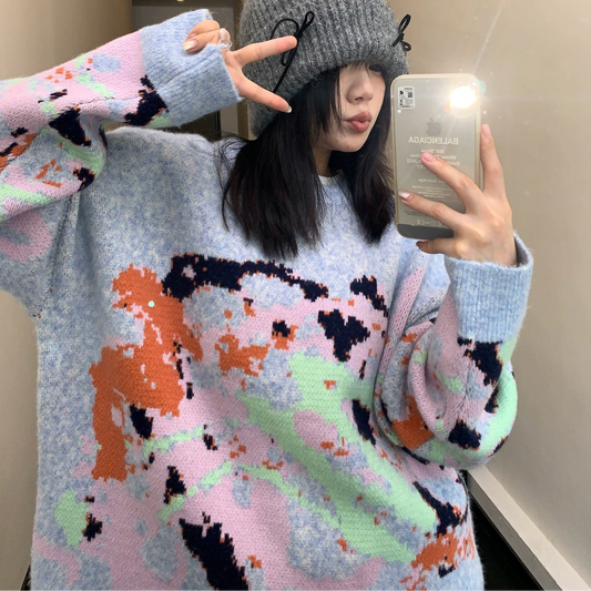 【トップス】秋冬 レトロ ゆったり 配色 個性派 ニットセーター【FCシリーズ】