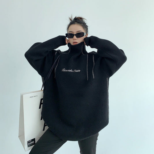 【トップス】秋冬 高級感 たっぷり 厚手 刺繍入り タートルネック プルオーバー ニットセーター【FCシリーズ】