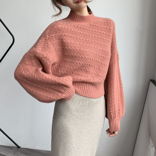 【トップス】秋冬 厚手 パフスリーブ エレガント ニット セーター