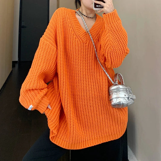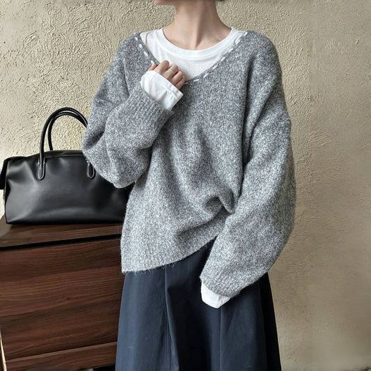 【トップス】秋冬 高級感 oversize レトロ Vネック 合わせやすい ニットセーター【FCシリーズ】