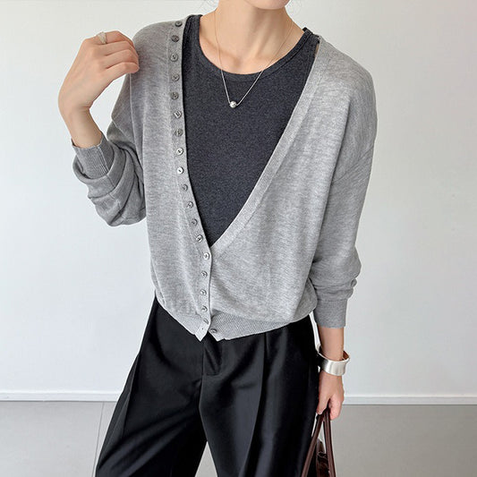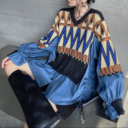 【トップス】秋冬 Vネック フェイクレイヤード 合わせやすい ニットセーター【AHシリーズ】