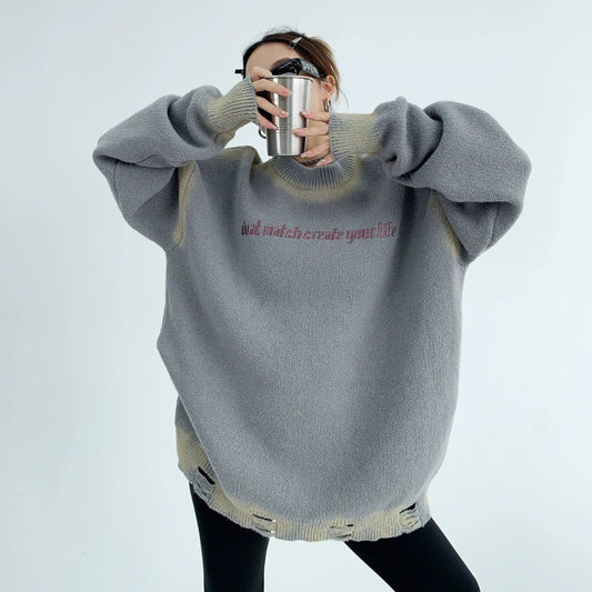 【トップス】秋冬 流行の予感 アルファベット ヴィンテージ加工 厚い保温 ニットセーター【FCシリーズ】