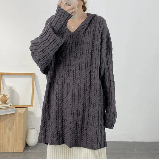 【トップス】秋冬 気質 厚手 オーバーサイズ フード付き プルオーバー セーター【FCシリーズ】
