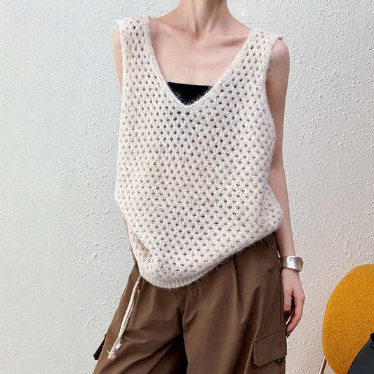 【トップス】ウール混 透かし編み ニットベスト|Vネック×レイヤードに最適な秋トップス【JZシリーズ】