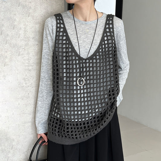 【トップス】秋先取り ゆるっと着られるレイヤードニットベスト 透かしデザイン【JZシリーズ】