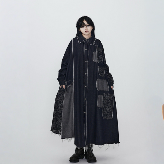 【ワンピース】春 秋 冬 ダーククール系 デニムトレンチコート ワンピース 【AHシリーズ】
