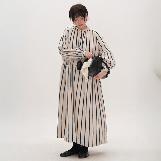 【ワンピース】春 秋 冬 ヴィンテージストライプ 長袖 ワンピース 【JZシリーズ】