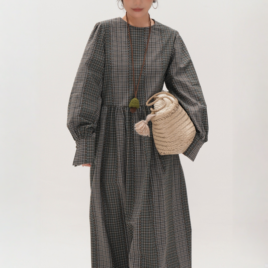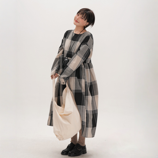 【ワンピース】春 秋 冬 チェック柄 ゆるリラックス ラウンドネック【JZシリーズ】