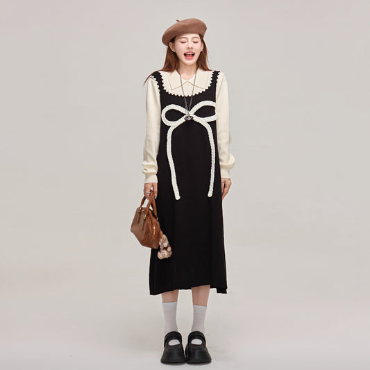 【ワンピース】蝶結びデザイン🎀 ツーピース風ニットワンピ 冬 レディース 上品&高見え 長袖ワンピース【JZシリーズ】