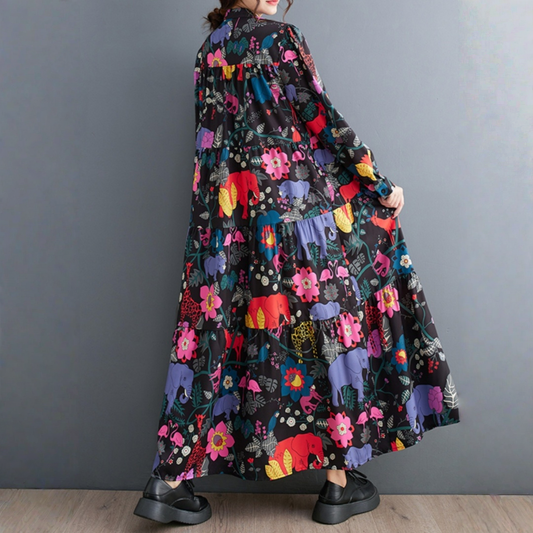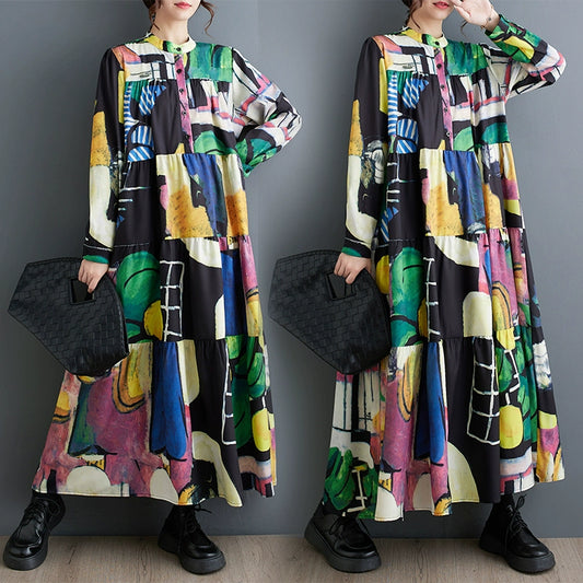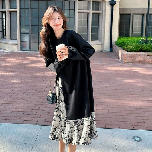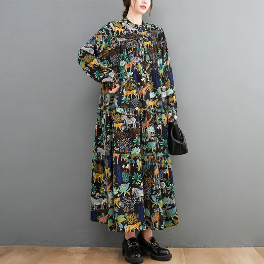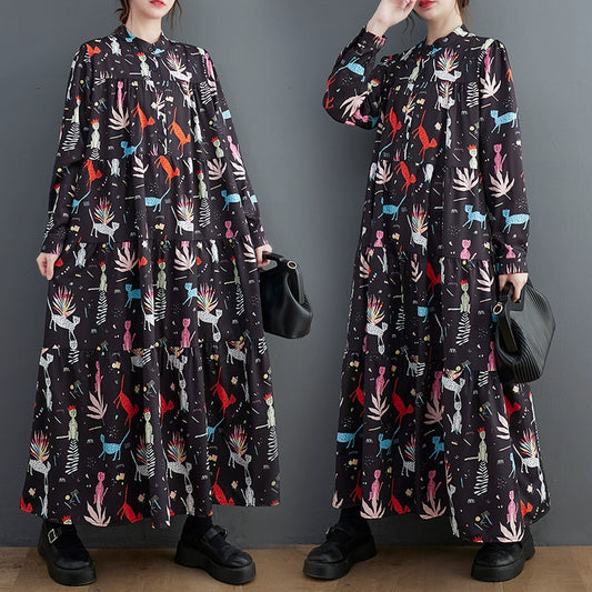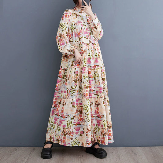 【ワンピース】春秋 花柄ゆったり 長袖ワンピース レディース カジュアル&オシャレ 韓国風 ロング丈【JZシリーズ】