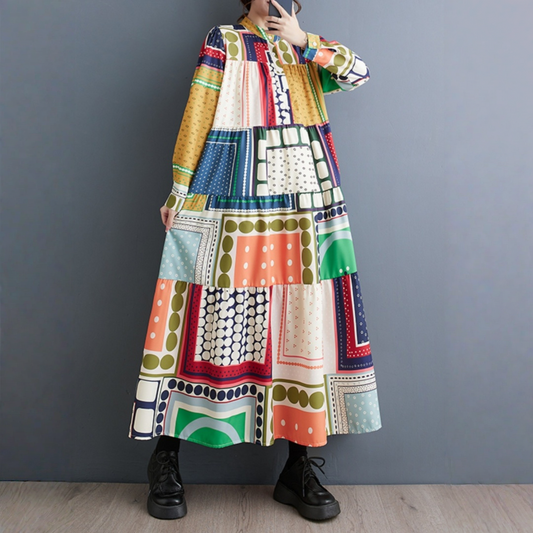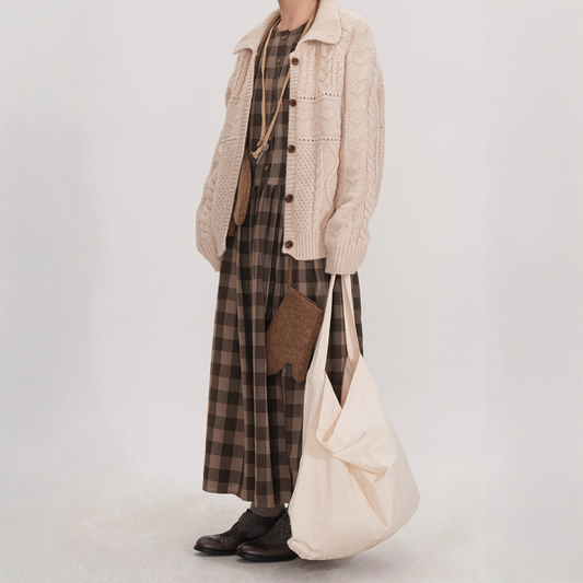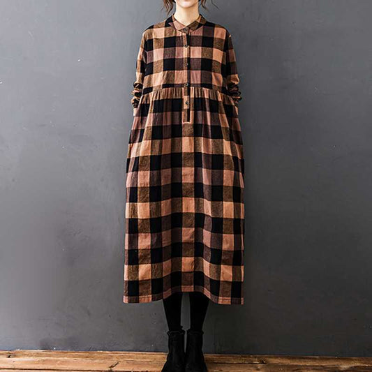 【ワンピース】春 秋 冬 レトロ風 ゆったりチェック柄 ロング ワンピース ワンピース 【JZシリーズ】