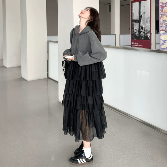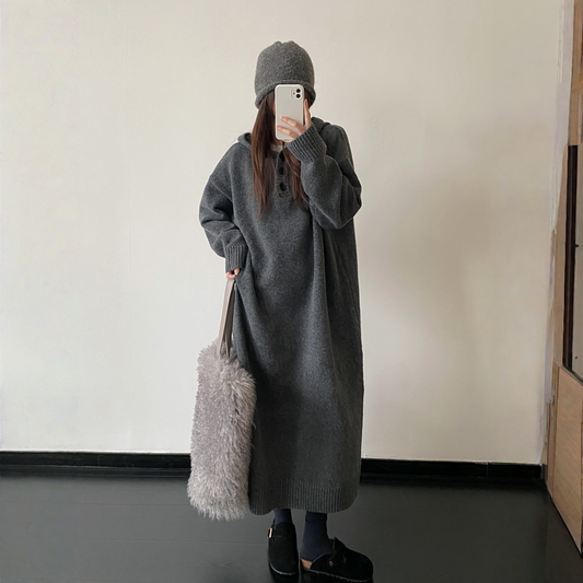 【ワンピース】春 秋 冬 デザイン性 新作 フード付き カジュアル 着痩せ 長袖ワンピース【JZシリーズ】