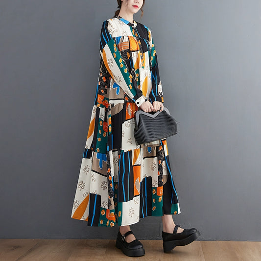 【ワンピース】春 秋 冬 レトロ風 個性的 通勤用 細見え ロングワンピース 【SHシリーズ】