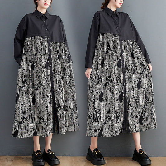 【ワンピース】春 秋 冬 プリント ルーズ 長袖 ワンピース【SHシリーズ】