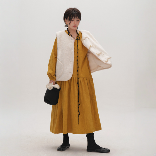 【ワンピース】フレンチレトロ 切替デザイン 大ポケット 長袖 ワンピース 秋新作 ゆったり 【JZシリーズ】