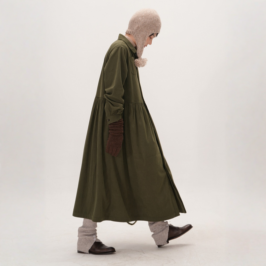 【ワンピース】フレンチ風 切替プリーツ POLO襟 長袖ワンピース ゆるシルエット ロング【JZシリーズ】