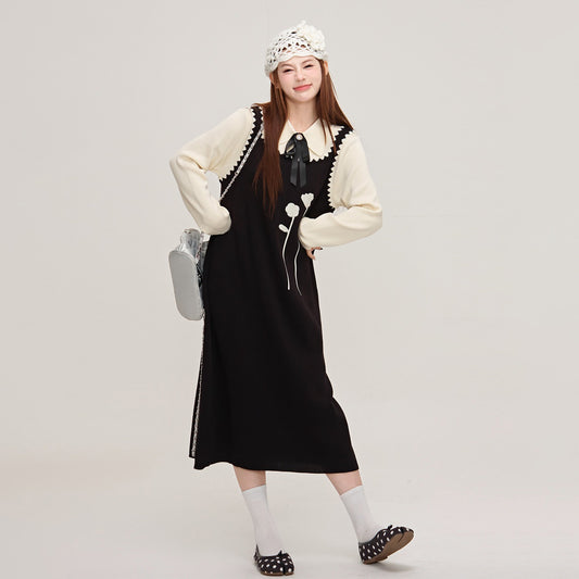 【ワンピース】🍒チェリーデザイン♡ツーピース風ニット長袖ワンピース 冬 レディース 高級感【JZシリーズ】
