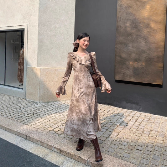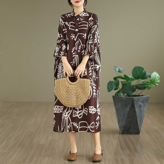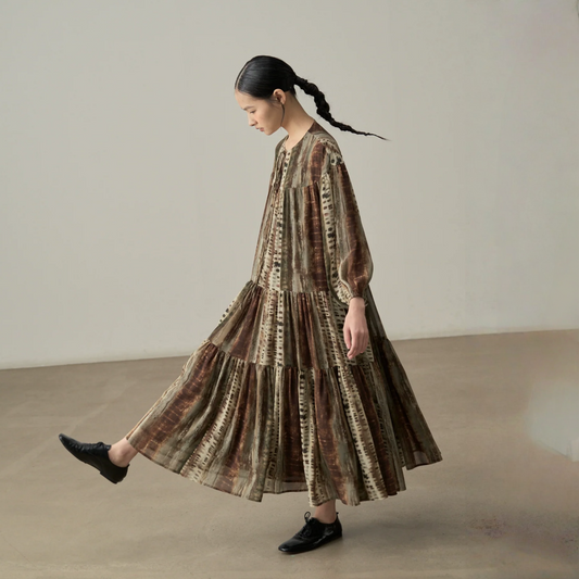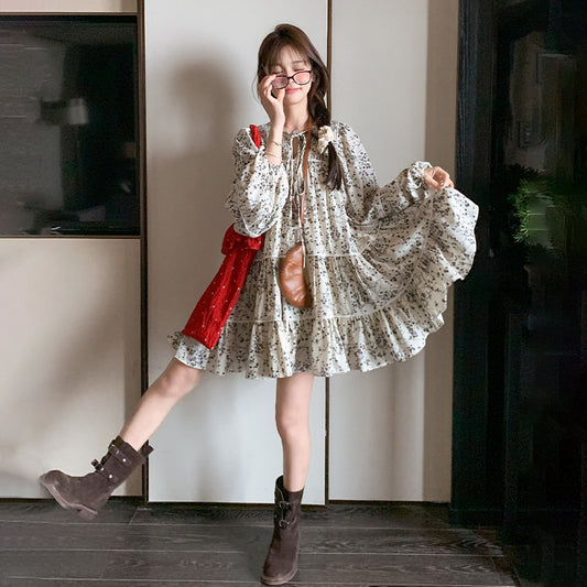 【ワンピース】春 秋 冬レトロ プリント ゆったり 長袖 ワンピース 【JZシリーズ】