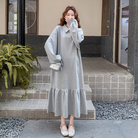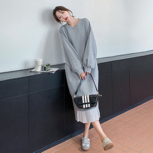 【ワンピース】レイヤード風 スウェットワンピース レディース ゆったり 体型カバー カジュアル ロング丈 長袖ワンピース 冬向け【JZシリーズ】