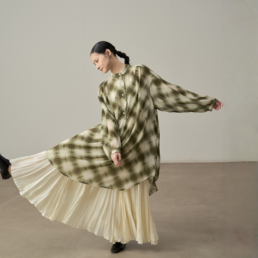 【ワンピース】春 秋 チェック柄 ゆるリラックス 重ね着 長袖 ワンピース 【SHシリーズ】