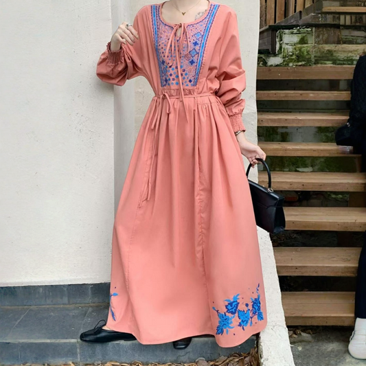 【ワンピース】春 秋 刺繍 ルーズ エレガント 花柄 長袖 ワンピース 【SHシリーズ】