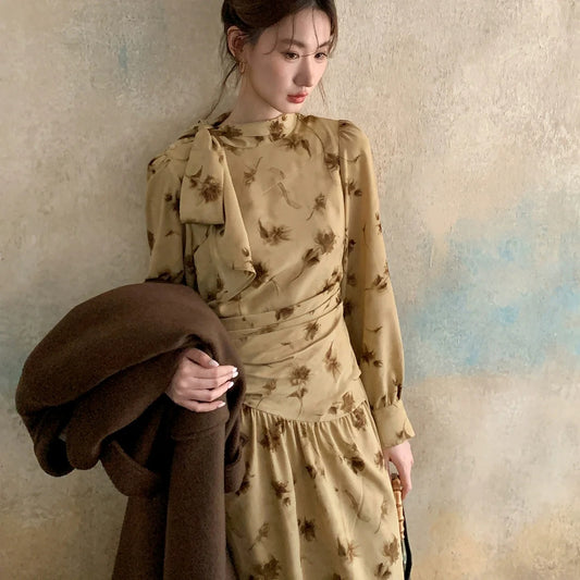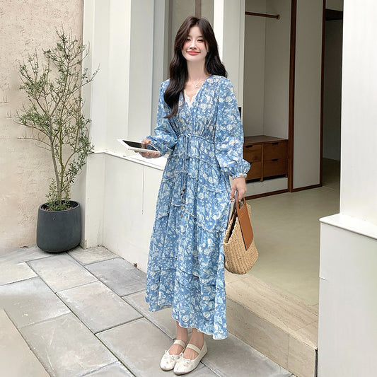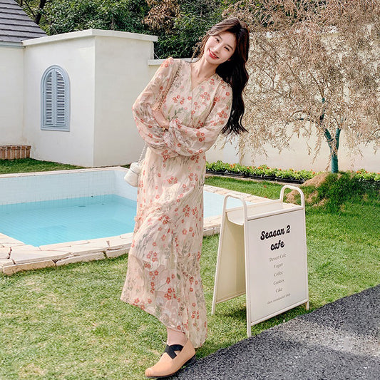 【ワンピース】春秋 優しい雰囲気 上品 フレンチ風 ロングスカート 大人気 トレンド 花柄長袖ワンピース【SHシリーズ】