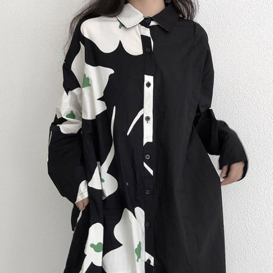 【ワンピース】春 秋 冬 レトロ プリント 花柄 ルーズ ワンピース 【SHシリーズ】