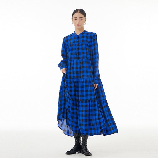 【ワンピース】春 秋 冬 チェック柄 ゆったり 細見え ティアードワンピース 【SHシリーズ】