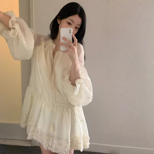 【ワンピース】春 秋 冬 刺繍 キュート フレアスリーブ ワンピース 【JZシリーズ】