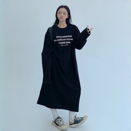 【ワンピース】春 秋 冬 プリント アルファベット 長袖 パーカー ワンピース 【FCシリーズ】