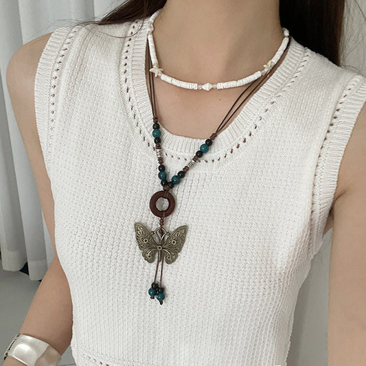 【🎁 B2G1|先行スタート!】【グッズ】レトロ 蝶モチーフネックレス レディース ロング丈 ニットチェーン 高級感 ボヘミアンスタイル ハングネックアクセサリー