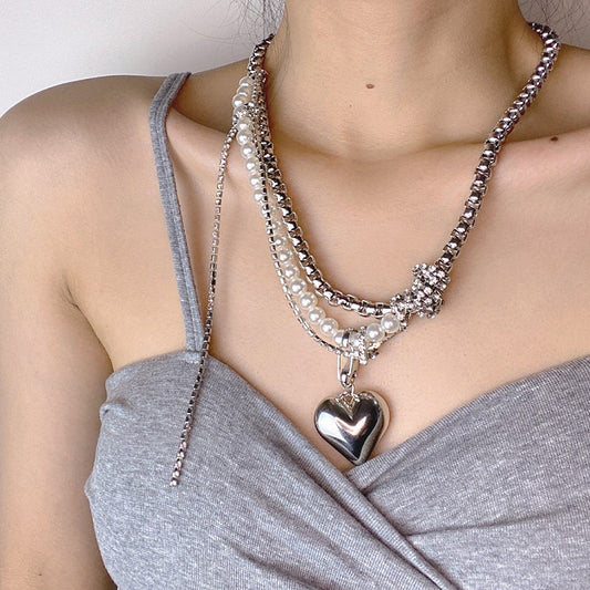 【🎁 B2G1|先行スタート!】【グッズ】フレンチヴィンテージ風 ネックレス レイヤード風 ハートチャーム付き上品チョーカー