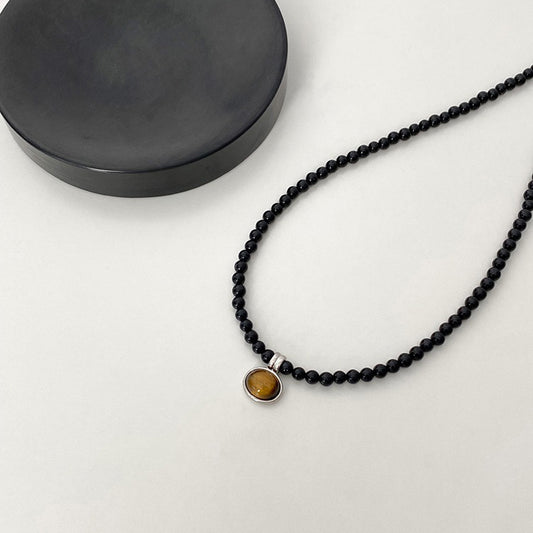 【🎁 B2G1|先行スタート!】【グッズ】色褪せ防止 ブラックオニキス タイガーアイ メラード ネックレス 上品 チョーカー チェーン ネックレス ニットチェーン
