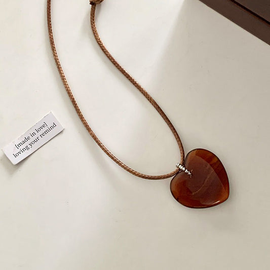 【🎁 B2G1|先行スタート!】【グッズ】ロング丈 ブラウンハートペンダントネックレス レディース 秋冬 気質 高級感 ニットチェーン シンプルアクセサリー