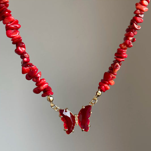 【🎁 B2G1|先行スタート!】【グッズ】レッドコーラルチップネックレス|中古|軽奢&個性派|高級感ある万能鎖骨チェーン レディース