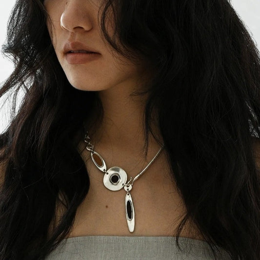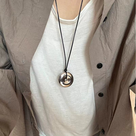【🎁 B2G1|先行スタート!】【グッズ】小众スタイル 黒曜石サークルチャーム ロングペンダントネックレス