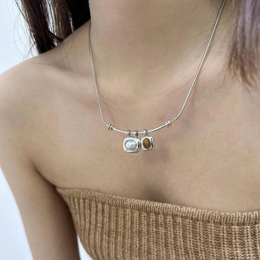 【🎁 B2G1|先行スタート!】【グッズ】INS風 スクエアパールネックレス プチラグジュアリー 気品 ハイエンドネックレス