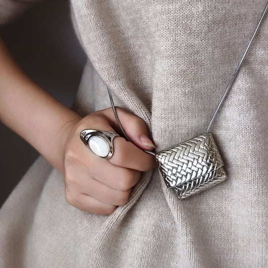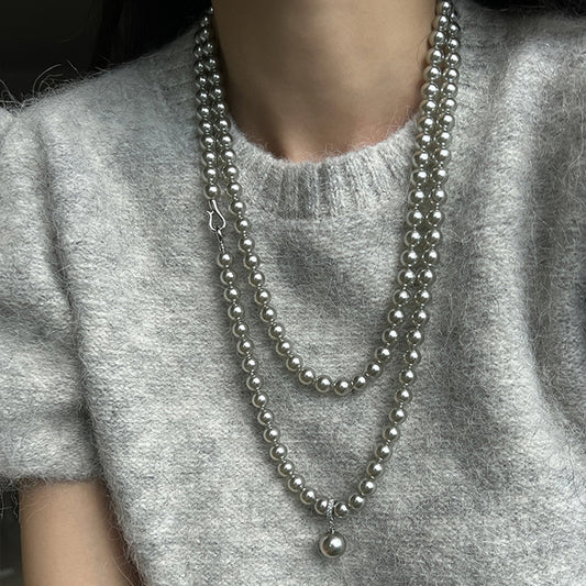 【🎁 B2G1|先行スタート!】【グッズ】新作 ハイエンド感 軽ラグジュアリー ニットチェーン 銀グレー パールネックレス