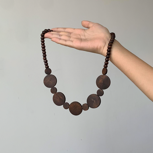 【🎁 B2G1|先行スタート!】【グッズ】中華風ヴィンテージ木製ネックレス&バングルセット|ダークブラウン|秋冬コーデに映える上品ミニマルアクセ