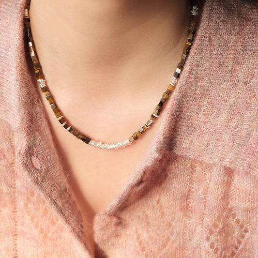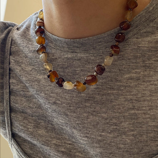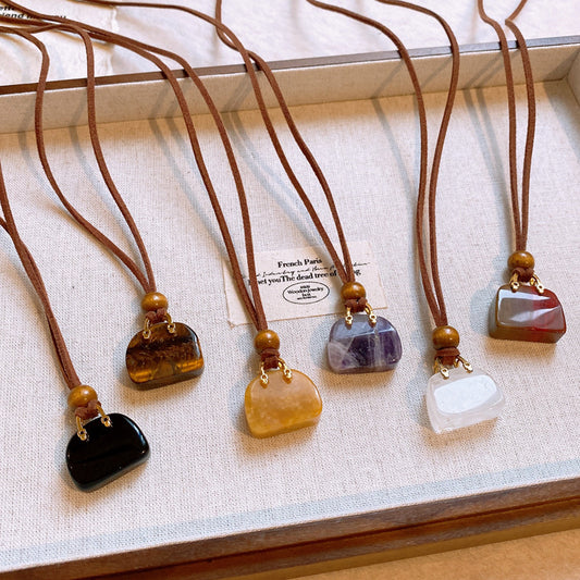 【🎁 B2G1|先行スタート!】【グッズ】韓国風 カラフル人工タイガーアイ バッグネックレス ニットチェーン レトロ 高級感 アクセサリー