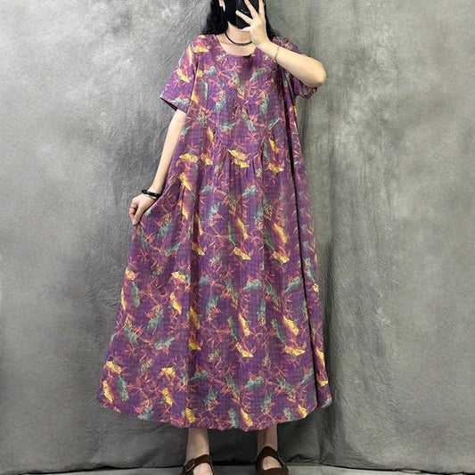 【ワンピース】プリント コットンリネン オシャレで上品 半袖 ワンピース 【SHシリーズ】
