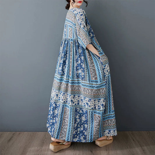 【ワンピース】ボヘミアン風 レトロ ティアードワンピース 春夏新作 大きいサイズ レディース ゆったり 長袖 体型カバー ロングワンピース【SHシリーズ】