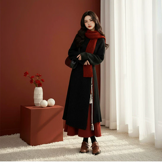【単品注文】【セットアップ】春秋冬 不規則なデザイン ファッション 無地 セーター + 長袖ワンピースセット